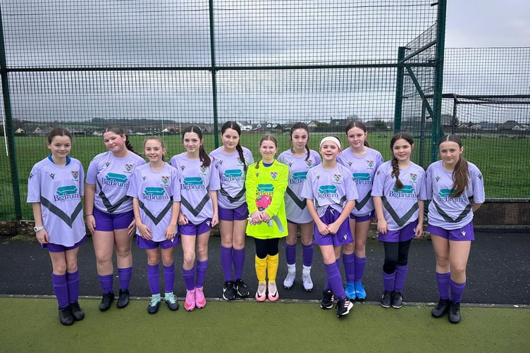 The girls have Pembroke Dock carpet and furniture shop Big Brum’s to thank for the kind sponsorship of their smart new kit.